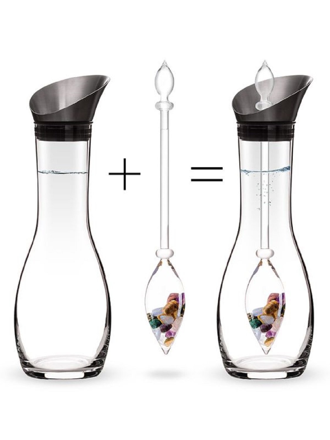 Vitajuwel ERA Five element arranged with mix white fresh flowers Five element blend (amethyst - rose quartz - chalcedony - petrified wood - ocean chalcedony) Size: 40cm *25cm *48cm