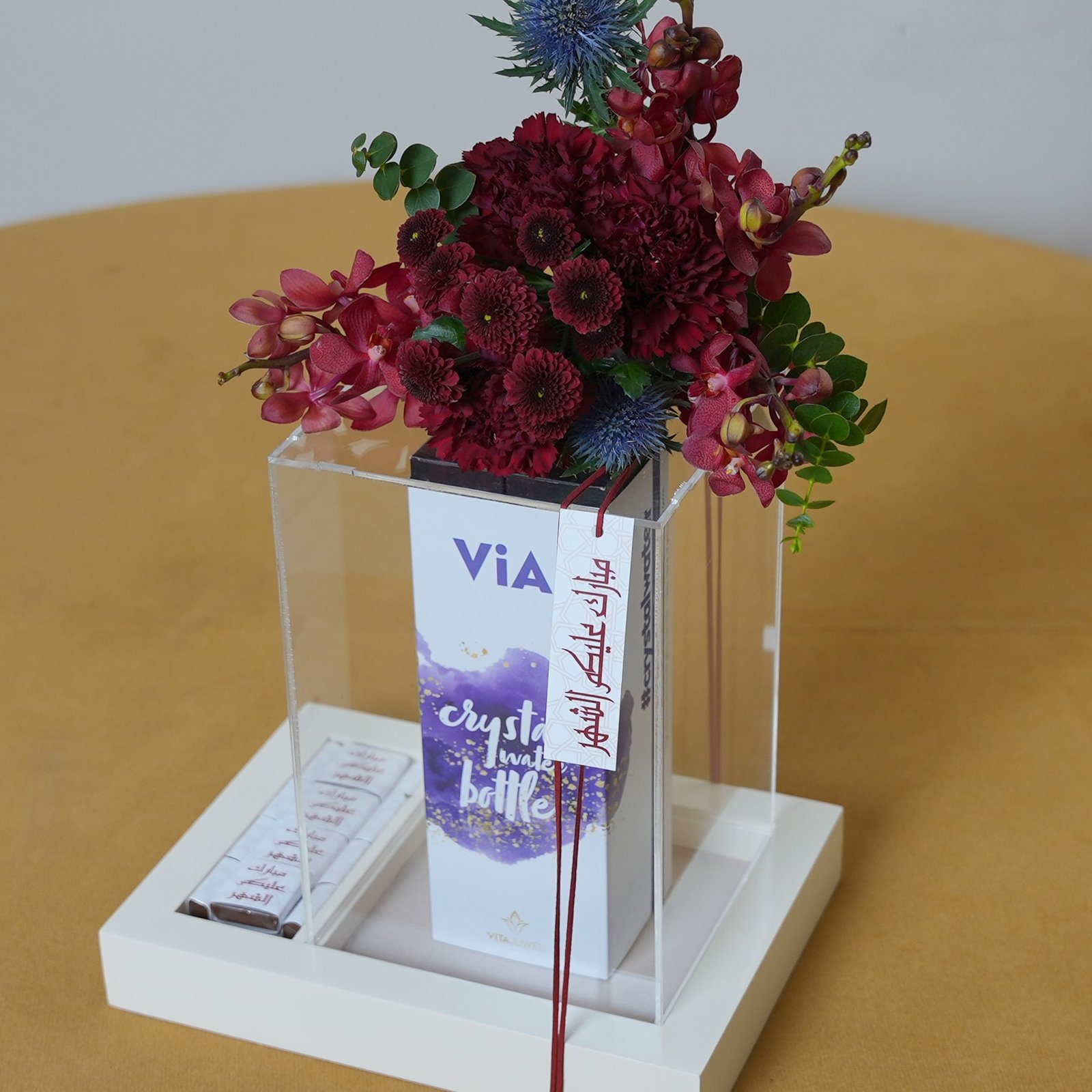 tray with a Vitajuwel Five Element bottle (amethyst - rose quartz - chalcedony